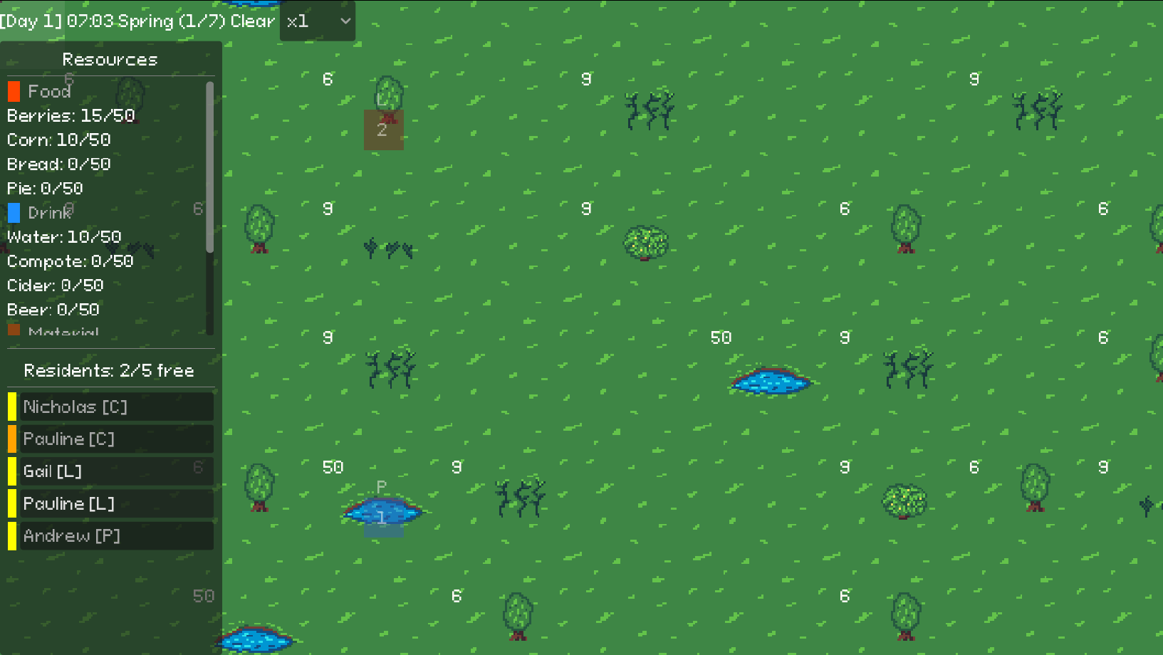 - ColonySim v0.41.7 — Hunting, Fishing, and Audio!28 days ago